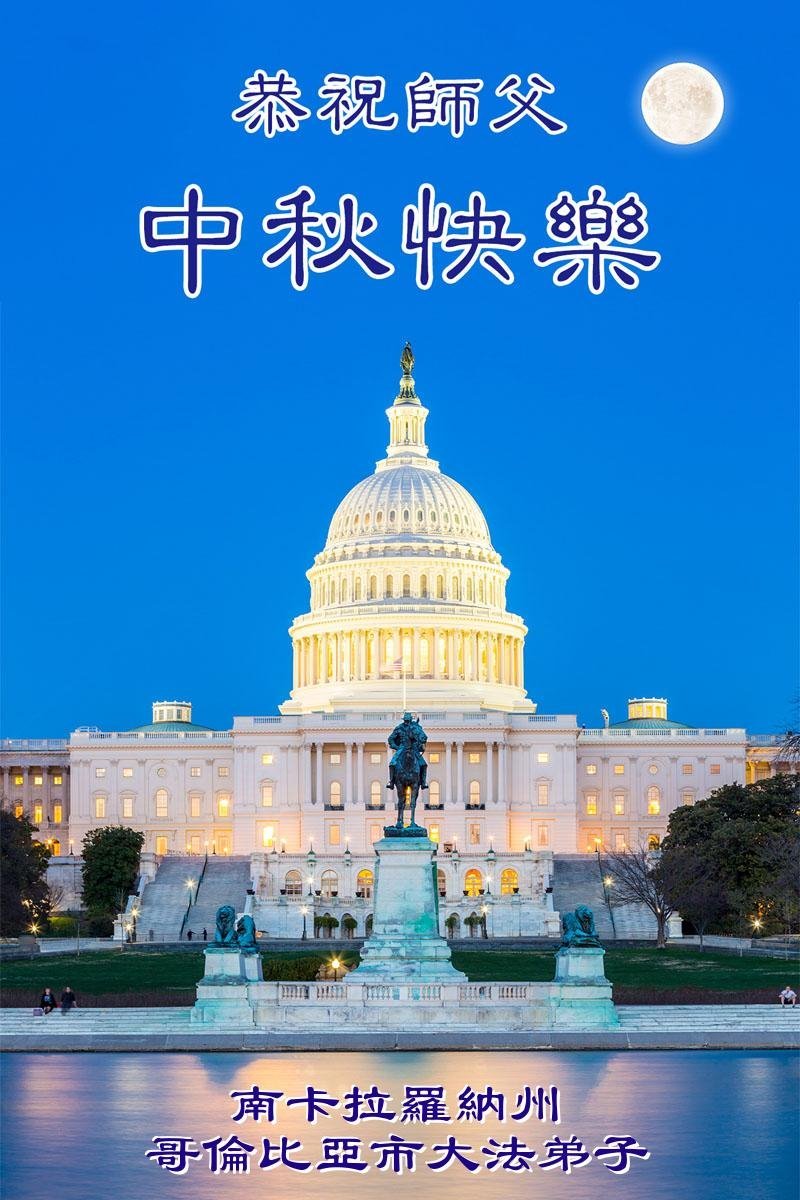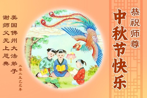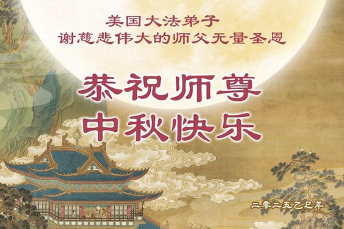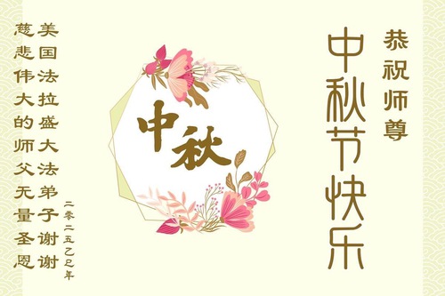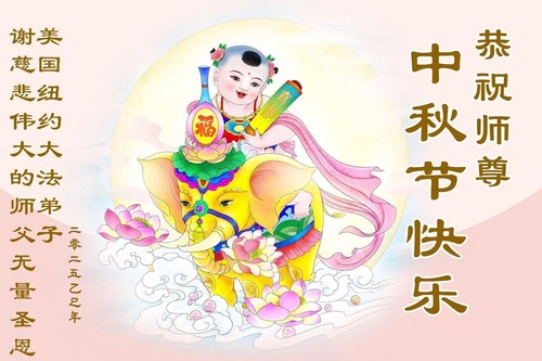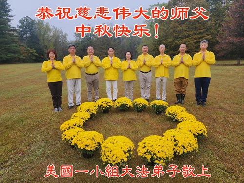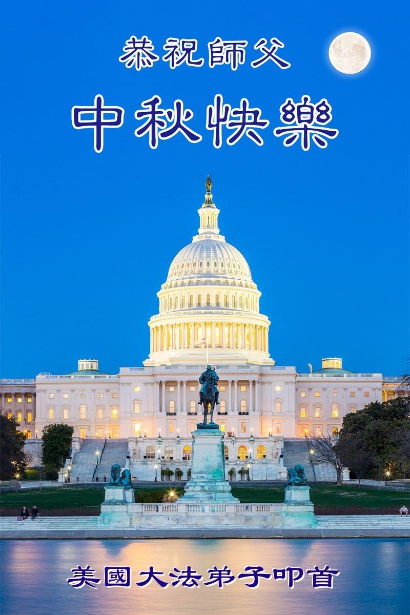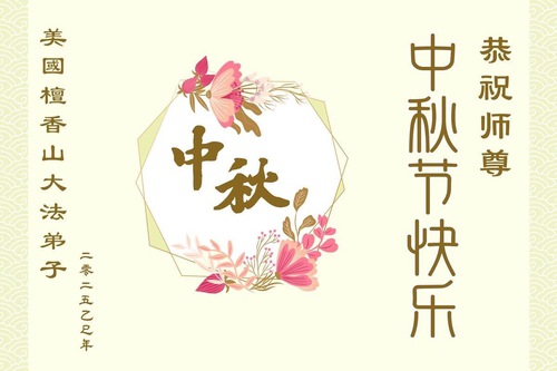 Praktikující Falun Dafa ze Spojených států přejí s úctou Mistru Li Hongzhi šťastný Svátek středu podzimu